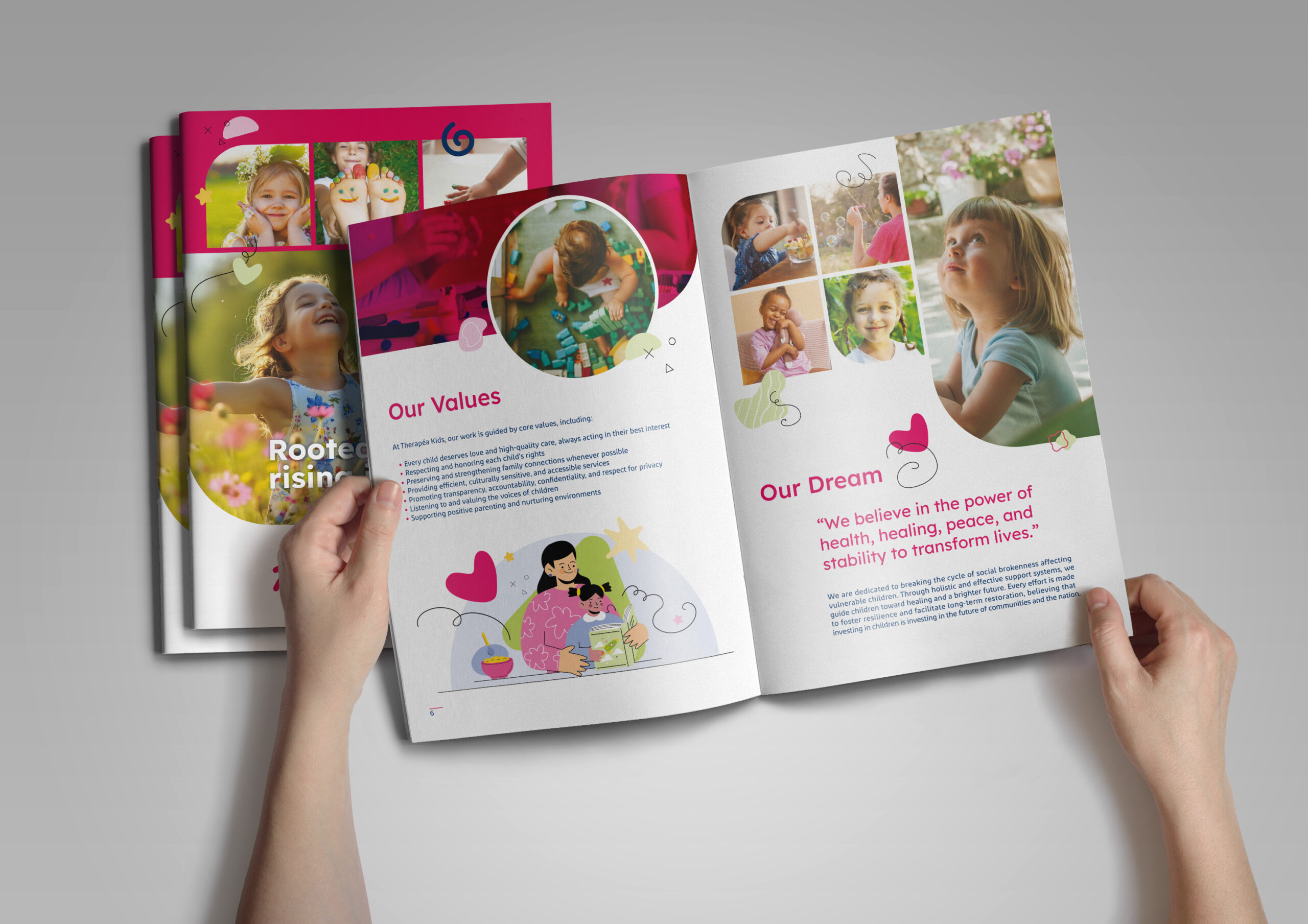 Wir durften Therapea Kids auf ihrem Weg begleiten und den gesamten visuellen Auftritt neu gestalten. Dabei war uns bewusst, dass es sich um ein sehr sensibles Thema handelt, bei dem Würde und Privatsphäre der Kinder oberste Priorität haben. Umso wichtiger war es, ein Erscheinungsbild zu schaffen, das Vertrauen vermittelt, die Werte der Organisation sichtbar macht und gleichzeitig die Menschen erreicht, die diese wichtige Arbeit unterstützen wollen.