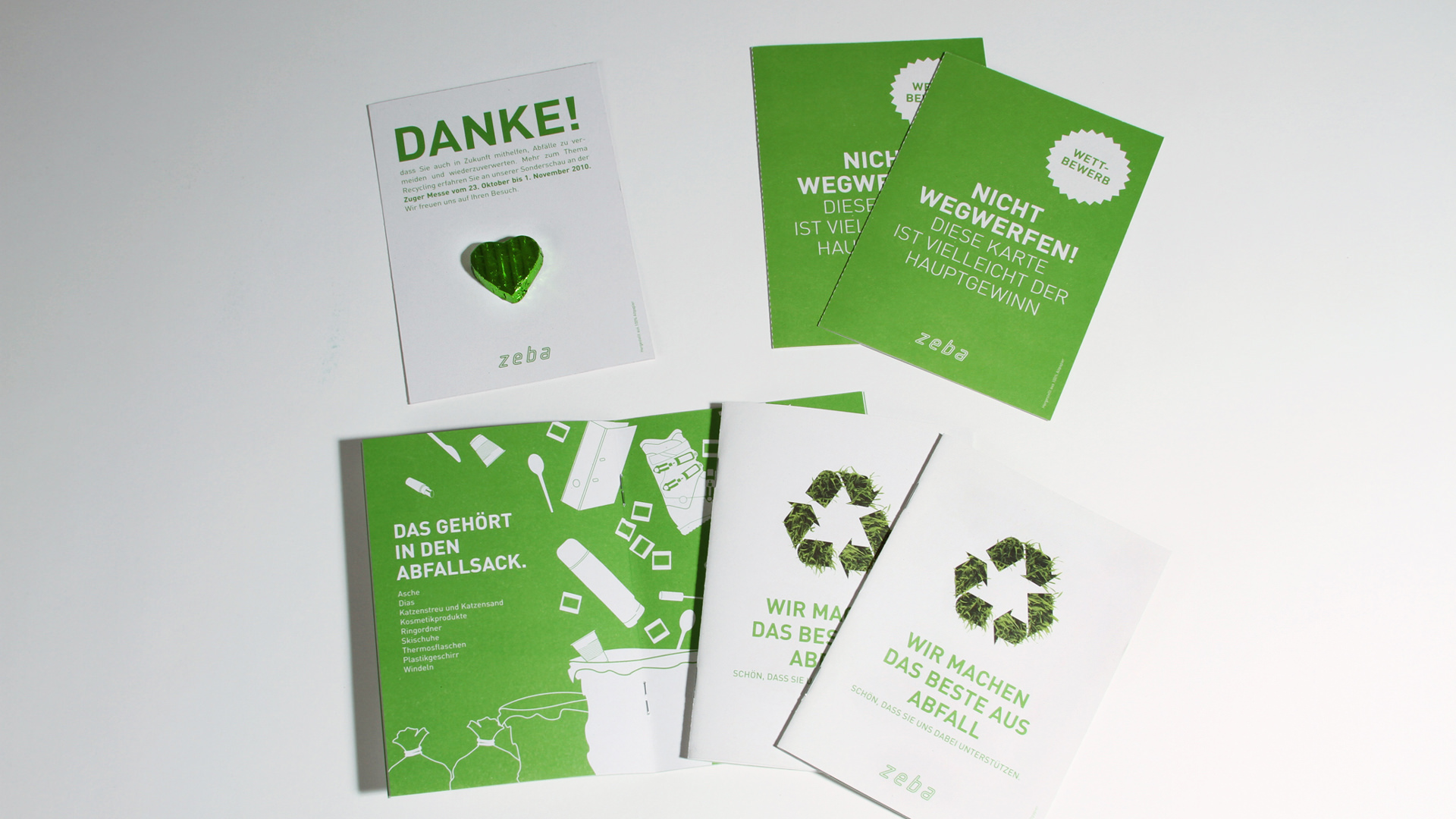 Der ZEBA hat sich zum Ziel gesetzt, den Besuchern der Zuger Messe das Thema Recycling auf informative und unterhaltsame Art näher zu bringen. Dynamite erhielt den Auftrag, zum Thema «Wir machen das Beste aus Abfall», eine innovative und überraschende Idee für ein Standkonzept zu kreieren.